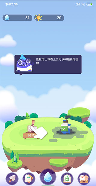 3、使用水滴,种植植物,开拓土地,装扮美好家园