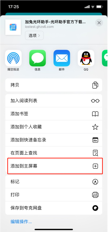 找到“添加到主屏幕”,如图。