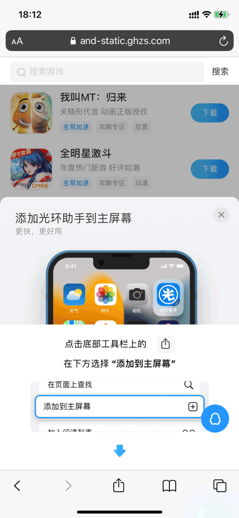 不少小伙伴在看到不能下载后,或许都开始“炸毛”了,先不要着急。目前IOS端光环助手已不需要下载安装客户端来使用,可直接通过浏览器启动网页版,操作方法如下 (需使用IOS设备操作)