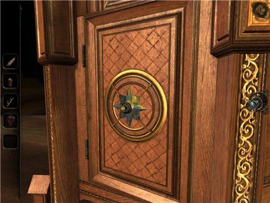 侧边有一个八角形图案,通过透视镜发现其实是一个指南针模型,我们需要通过旋转移动将NESW字母拼合起来,从而打开机关,得到一个木块。