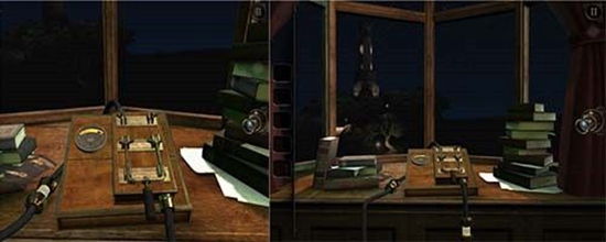 用钥匙打开沙盘上一座建筑的锁孔,出现另一个小洞,通过透视镜进入。