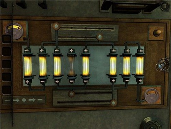 通电导管持续将电流导入房间中间的投影盒上,扳动投影盒上的四个开关。中间会出现一个按钮,按下点击。