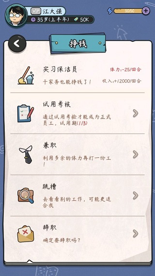 健身教练:健康证+体魄400→600体魄+健康证+六回合工龄→750体魄+500情商+健康证+十二回合工龄