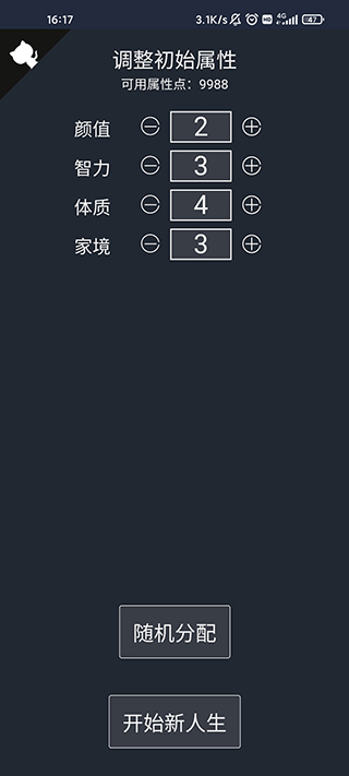 3、再者就是家境这个属性也不能过低,如果家境过低的话,很可能就活不过童年,会在小的时候由于家庭困难而去世,因此小伙伴们在开局的时候也需要将家境这个属性点高一些。