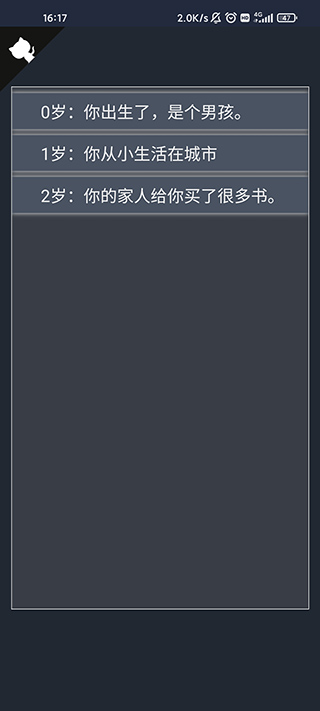 3、然后就开始模拟了,玩家将从0岁开始慢慢的往下成长;