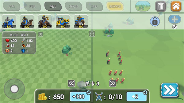 (2)盾兵Shield 我个人很喜欢,满级以后防御最高,而且速度也不掉,适合面对敌方远程多时,放最前面挡远程。