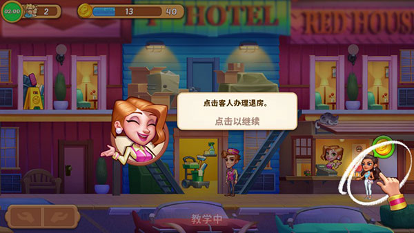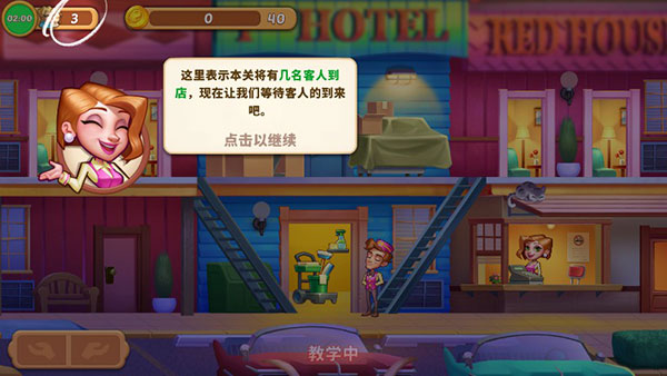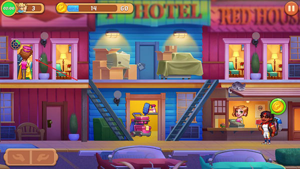 点击关卡后开始我们的酒店之路,可以很好的看到提示,完成本关所需要的条件;