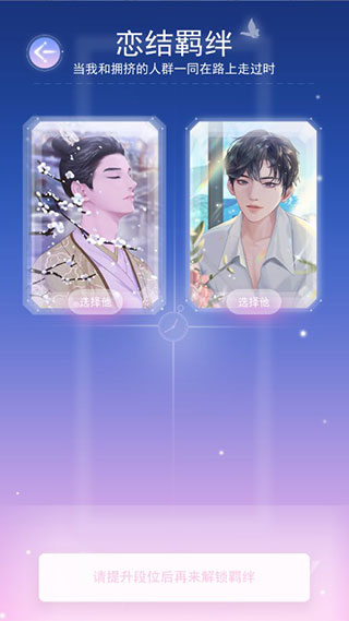 不仅如此,当你进行段位pk时,还可选择与你有羁绊的美男子,他将会一直陪伴你;