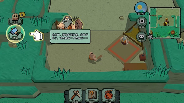 加工完成后,拿起果浆,将加工好的果浆交给族长,之后便可通过“招募”来为灾民分配工作。