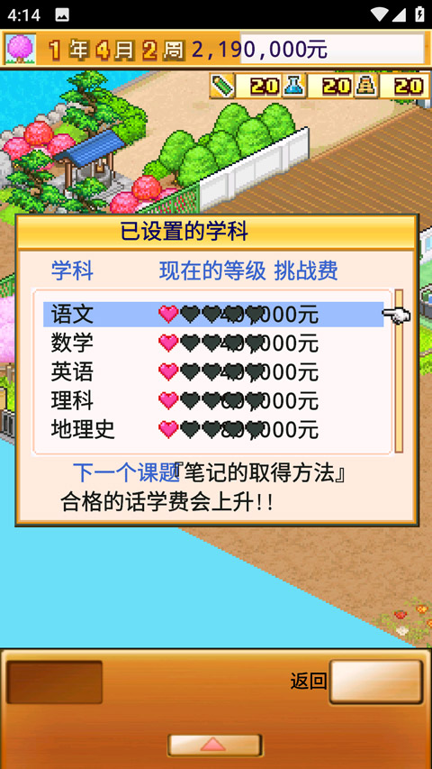 3、以经营学校为主题,玩家需要做的主要工作就是通过各种设施、教学来提升学生教师的能力。