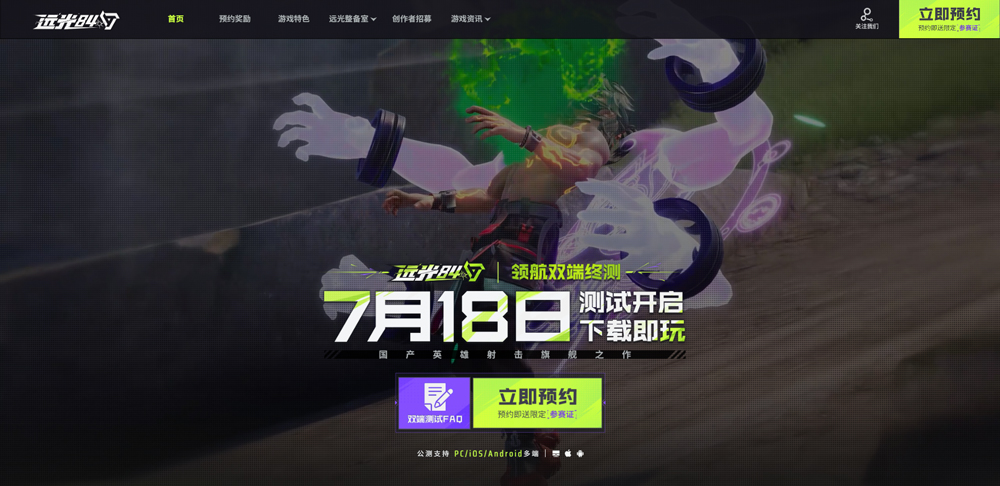 1、首先打开远光84官网:https://84.lilith.com/,点击右上角立即预约;