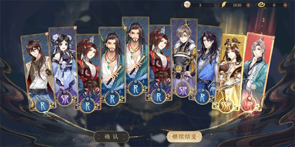 名士的初始等级还是很有差别的,UR、SSR、SR、R,等级越来越低,在一开始培养的时候,我们就需要有意识培养已有的高级的名士。因为目前名士培养错了,可是没有机会进行重置的。可以使用花诏令或者金叶子进行结交更多的名士,最开始结交的的道具肯定是不够的,静月建议大家先攒一攒,不要想着一开始没有厉害的名士,就直接进行结交了,相对单次来说,直接结交十次的概率我感觉是要大些的。而且还有新手福利,第一个池,前十次结交必得一个SSR,前二十次结交必得一个UR。