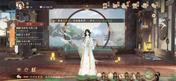 宣景盛世,世家子弟方可入学明雍书院。作为大景的皇家书院,院内亭台楼阁、吃穿用度也无不富有皇家气派。你将在此修读景朝礼法、天文、制香、鉴宝等特色课程,体验春游茶会、诗歌宴集等古代雅致的书院生活。