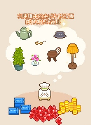 使用妖精票,可以在【妖精家具店】购买家具。有了家具和装饰,可以让店面变得更华丽!