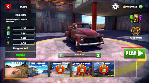 1、打开在本站下载的脱离道路最新版无限金币版游戏,进入游戏首页,选择你想要的游戏场景,点击开始游戏;