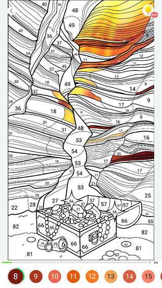 没有美术功底却又想涂涂画画怎么办?不用担心,快来试试数字填色游戏苹果版,这是一款画风超级唯美的色彩填充类手机游戏,玩法非常简单,只需根据调色盘的色号,用手指点击该色号对应的色块,轻轻一点即可填色,无需纸笔,可随身携带的掌上填色书。在这里,有着各种类型的填色书,除了人物、卡通二次元、鲜花、美食、风景等分类之外,还有超多精美图片,你将体验把每一个黑白的图案涂上最缤纷鲜艳的颜色的奇妙,找到属于自己的乐趣。而且,完成艺术大作后,可一键分享填色完成视频至抖音,也可以将您的佳作便捷分享至朋友圈等各社交平台,向朋友和家人晒出自己的作品,快来下载一起涂色吧!