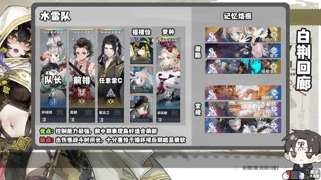 其次可以选择一些适合给火雷队中昊苍和雷系远程增伤的烙痕,例如空,残照,化为千鹤
