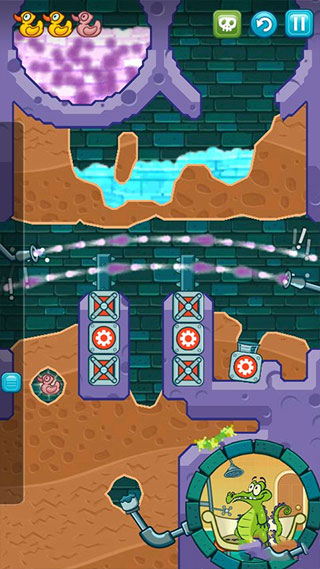 1、操作方式很简单,用“鳄鱼抓”对着一片棕色土地进行刨土,让水流流入小鳄鱼的洗澡水管里即可。在游戏过程中,玩家要保证清水顺利流进小鳄鱼的澡盆里,沿途还要尽量收集小鸭子,要尽可能多多收集,同时还要注意收集有些隐藏的道具。