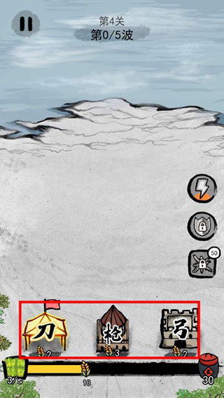 4、会有不同兵种的敌人来袭,要通过合理的排兵布阵打败它们