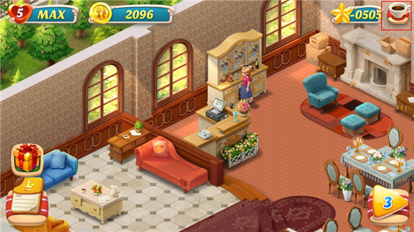 1、首先进入餐厅复兴游戏,点击游戏右上方咖啡杯;