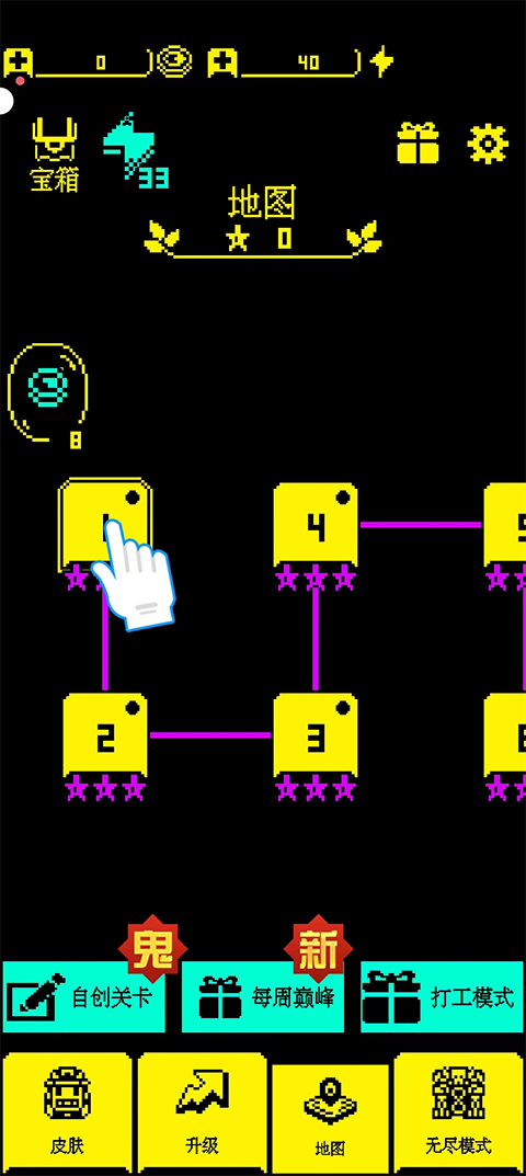 我要吃金豆苹果手机版是一款经典复古像素风格的休闲闯关类游戏,该游戏玩法延续了“吃豆人”经典,具体操作只需在屏幕上下左右滑动,角色便会一滑到底,也只有遇到墙体才能改变角色的移动轨迹。游戏内黄色小方块是玩家行动的主要目标,并且关卡内还有星星需要玩家收集,除了以上的元素设计,陷阱、机关以及其他各式各样的危险,对玩家线路规划能力以及反应能力有一定的考验。