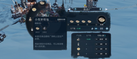 游戏之中存在六种资源,分别为:煤炭、木材、钢材、核心、生食材、食物储备。