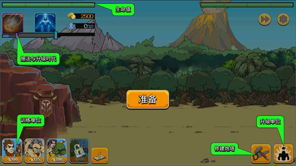 战争进化史2苹果版是一款横版战争策略类游戏,也叫战争时代2,英文名叫Age Of War 2,2D战争模拟效果,画面非常精致,内容也更加丰富,搭配上激昂的背景音乐和战斗音效,远古战争的烽火就在你的手中点燃。在这里,战争跨越了各个时代,玩家们要从石器时代开始,根据实际情况,发展自己的文明,制定合适的战略方针,抵挡对方的进攻,并且带领自己的文明去侵占其他文明,掠夺物资,壮大自身,让自己的文明成为唯一的文明。游戏会跨越很多不同的时代,每升级一个时代都会有更强的兵种,有很多不同的单位可以训练。感兴趣的玩家千万不要错过了,赶快加入游戏,好好享受游戏给你带来的快乐吧。