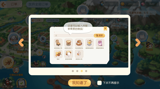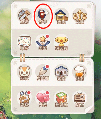 右上角书本按钮点开以后,第二个热气球一样的按钮就是订单。在这里可以看到其他玩家/居民的订单,完成订单以后可以获得一定金币和经验值(p.s.在【目标PART8】修复订单气球任务后开启)。另外,大概完成3-6次普通订单会刷新出惊喜订单,有机会获得大量经验、金币,还有晶钻。