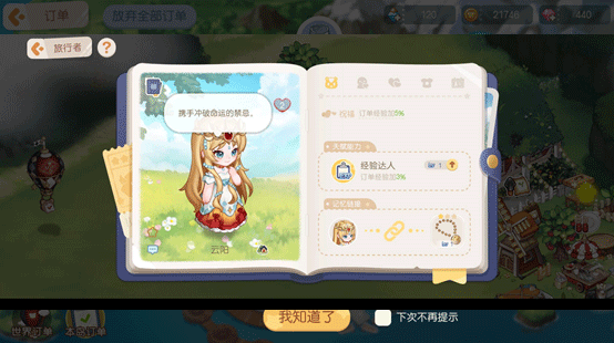 订单属于比较费时间的玩法,不过能拿的经验也不少。如果是佛系玩家的话可以不选做,等有红点了顺便去提交下就可以。对肝帝玩家来说,可是个不小的收益。