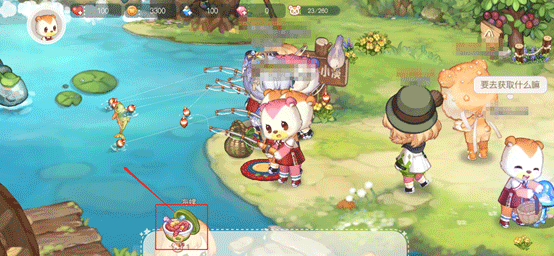 另外就是钓鱼啦,大家可以前往青木森林、奥比斯雪山顶去钓鱼,还可以饲养在家园的水族馆里。只要点击海螺鱼饵,再扔进小溪里,就可以钓鱼啦。