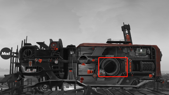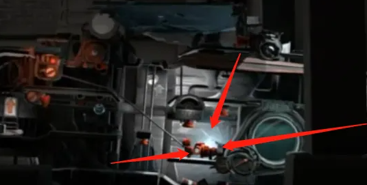 图中高亮的是机关,橙红色,所有图中都是这种颜色机关,由于人只能控制前后和跳跃动作,所以按钮基本就是顶,踩,推 这几种。能量液用于驱动后面的 “房车(帆车)”。能量液不直接叫燃料,因为它后面可以用来灭火,叫燃料有点违和。