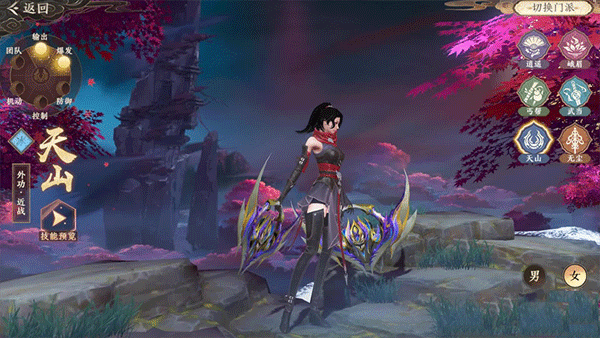 天山武学擅长掩盖身形,对敌人发起出其不意的刺杀。一击必中远遁千里,身法灵动鬼魅令人难以捉摸。职业技能【阳关三叠】快速突进敌方造成多段伤害,并附加减速效果,让敌人无处可逃。【影遁无形】隐藏自身踪迹,静静等待敌方露出破绽,踏血寻梅给予最终一击。