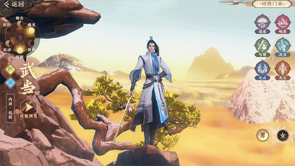 武当武学擅长远程牵制对手、剑法与御气合一,进行大范围持续输出,以守为攻,反控敌人,起到后发先至的效果。职业技能【如封似闭】引真气持续追打敌方穴位,而后引爆真气,重创敌人的同时施加范围形封穴效果。【天外飞仙】将精纯的内功化成灵鹤模样,再借由长剑打出,对敌人造成重创。