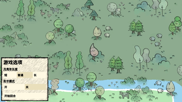 2、调整好后,点击开始新回合,选择游戏月亮长度和是否打开和平模式;