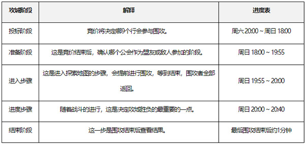 -周日20:00攻城战正式开始,攻城战队从此时起不再返回。