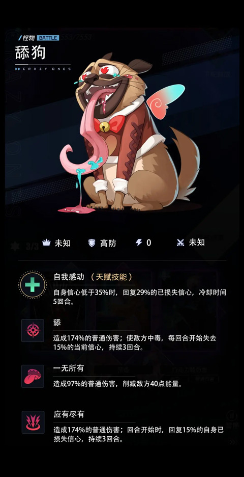 除恋爱养成外,奇点时代手游创造性地加入了卡牌战斗来提升游戏的可玩性,与市面上千篇一律的数值对战不同,采用独特的CCG卡牌对战玩法,易上手又不失策略性。游戏中的怪物以现实生活中的各种梗为原型,玩家可以在游戏中拳打绿茶婊,脚踢油腻男。战斗过程中需要玩家根据怪物属性合理地选择卡牌搭配以及出牌顺序,如使用纯粹伤害卡牌对抗高防御的“杠精”怪物,百分比卡牌对抗高血量的“巨婴”怪物等。