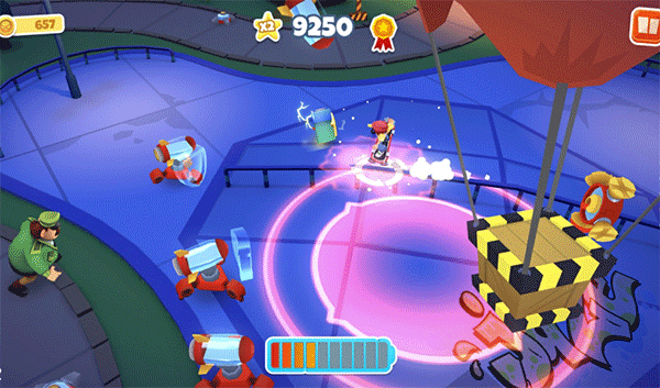 3、不过要当心——保安在你的尾巴上很热。您的悬浮滑板也可能会没电,因此当您击败机器人时,请务必抓住浮动电池进行充电。