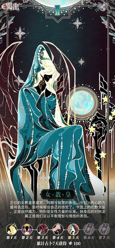 ②一周连续占卜7天能获得100钻