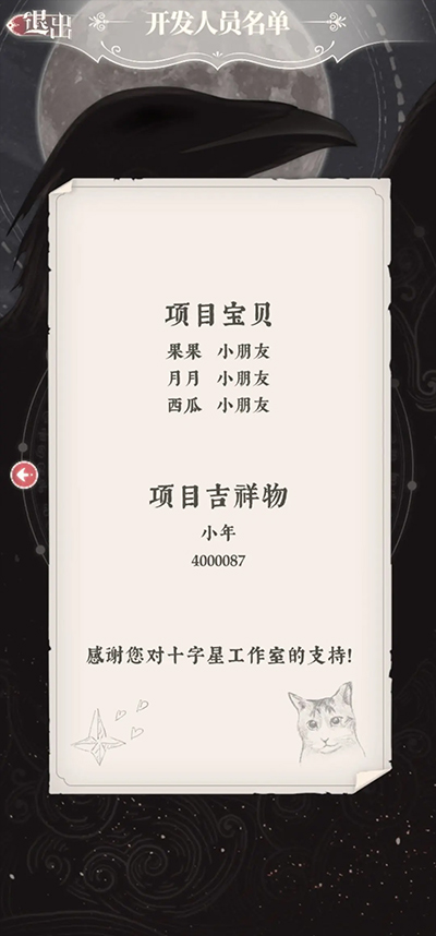 ⑤点设置→点制作人员→翻到最后一页点猫咪图标能获得500钻