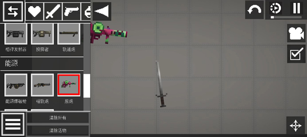 2、之后我们需要找到枪械里面找到原炮,选择将其拖动在光剑左上方的位置;