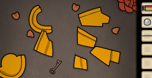 过去:根据时间调整闹钟房间会震动起来,点击花瓶打碎拿到钥匙,打开抽屉获得西洋棋,将西洋棋放到棋盘上。