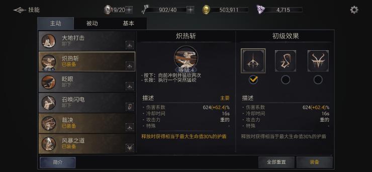 1、炽热斩。带初级效果释放加护盾!长按技能也属于释放,盾也就一直在,可以用于防备接下来的攻击。