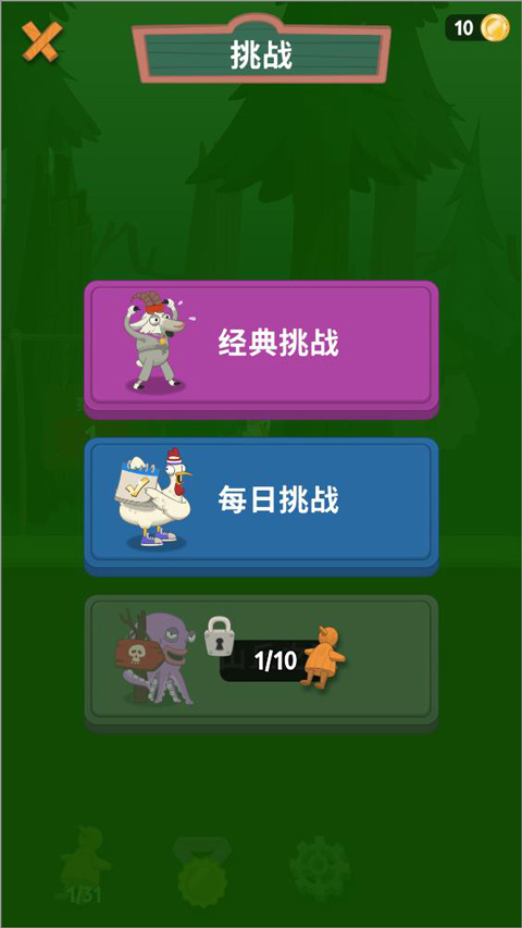 2、打开挑战页面,有经典挑战、每日挑战等三种玩法,每种玩法都有不一样的关卡;