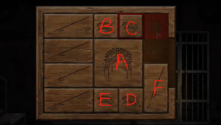C右下、B右右、A上、D上左、F左、C下下、B下下、A右、D上上、E上上、F左、B左下、A下。
