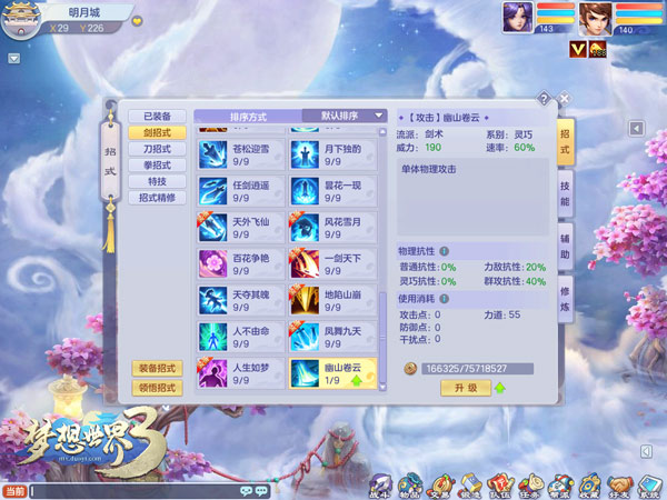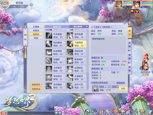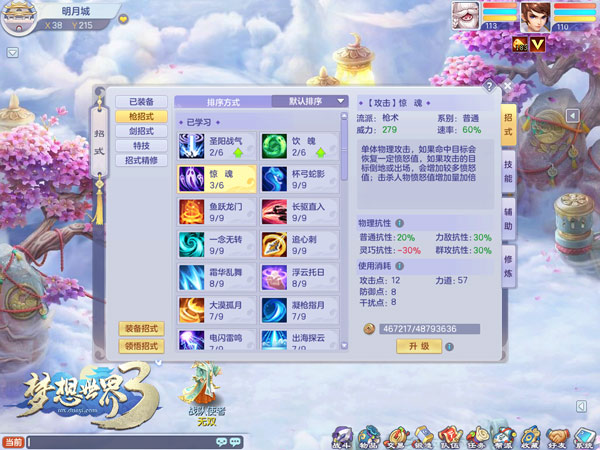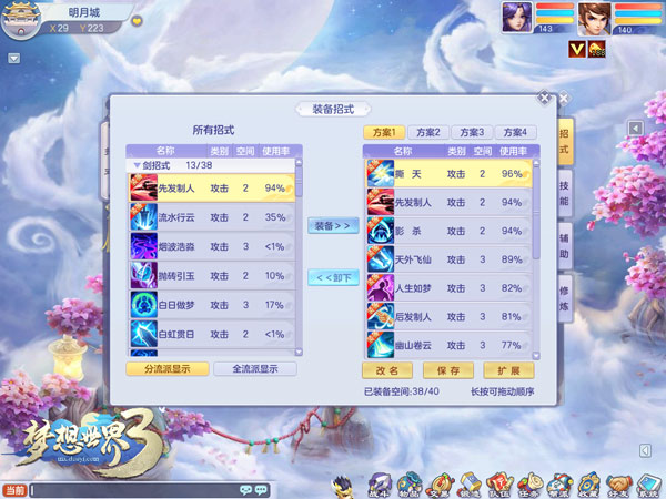 《梦想世界3》中所有的招式都对应着装备空间需求,玩家需要根据实际需要,利用有限的装备空间合理搭配招式组合。