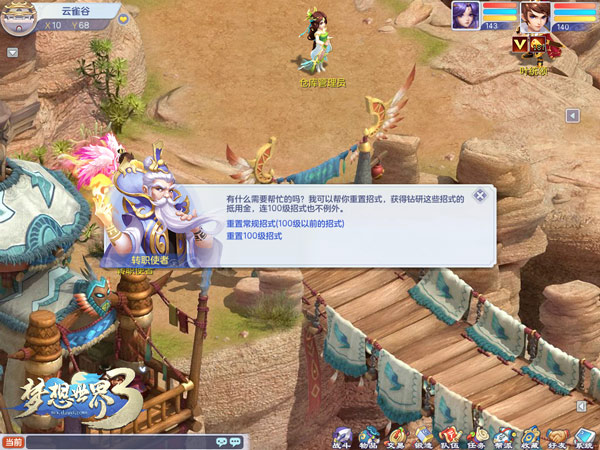 在云雀谷转职使者(11,65)处可以重置所学的招式等级,分为重置常规招式(100级以前的招式)、重置100级招式,这两个选项都具有对应的重置规则。