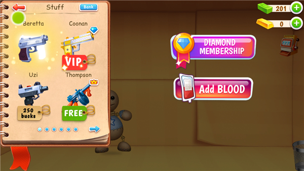 4、还可以通过不断升级得道具和武器来对木偶进行超级破坏和胖揍。