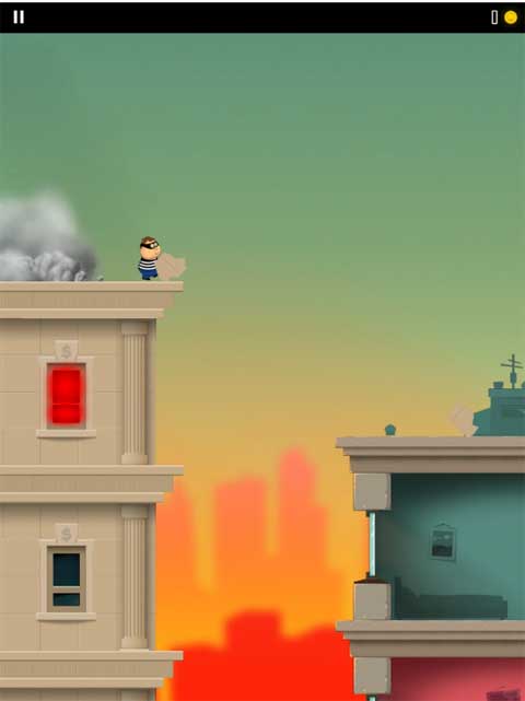 1、游戏的开局就是胖胖老爸身穿小偷的服装,从一座高楼大厦蹦出来,跳到另外一座城市。