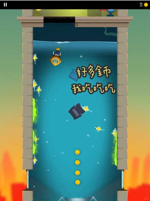 4、在这里胖胖老爸穿着潜水服不断吃好多好多的金币,金币吃的越多,那么就能购买更多的东西。