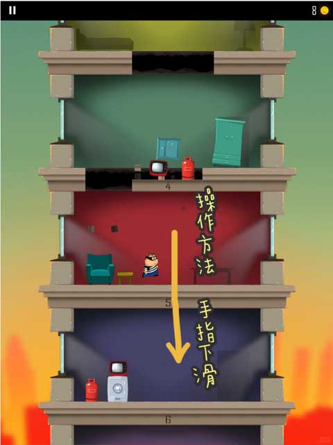 2、它的操作手法就是手指上下滑动屏幕,通过蹦跳的方式冲破楼层,从而到达下一层。
